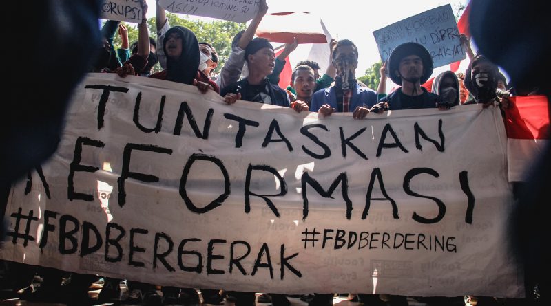 Yogyakarta – Senin siang (30/09/2019), massa aksi yang tergabung dalam Forum BEM DIY (FBD) bergerak menuju kantor DPRD dari titik kumpul parkiran Abu Bakar Ali untuk menyuarakan pendapat. Aliansi ini merupakan gabungan dari beberapa Badan Eksekutif Mahasiswa se-DIY, pada aksi hanya sembilan BEM Universitas di Yogyakarta yang bergabung untuk memenuhi kantor DPRD salah satunya, Universitas Islam Indonesia (UII).
