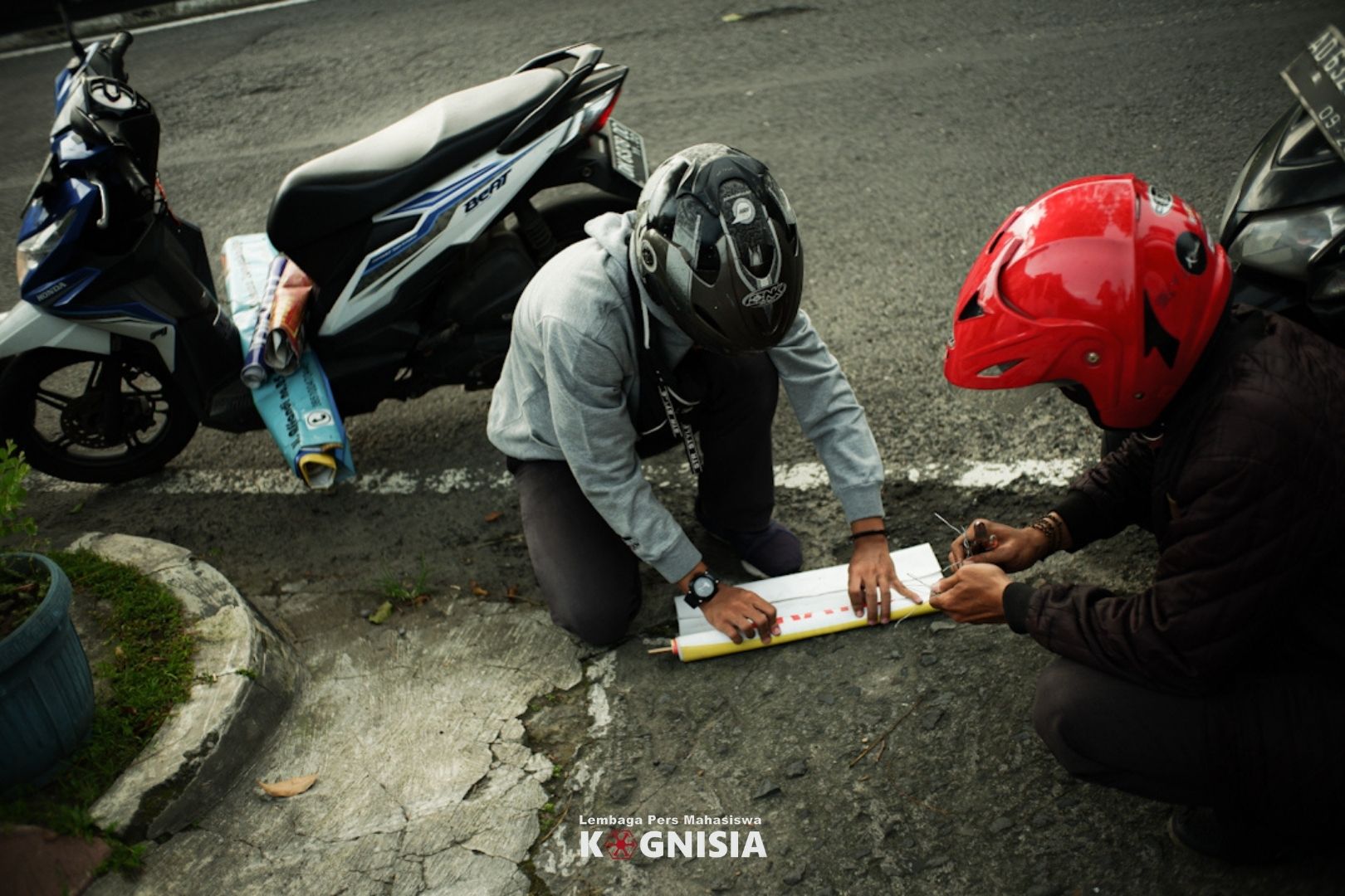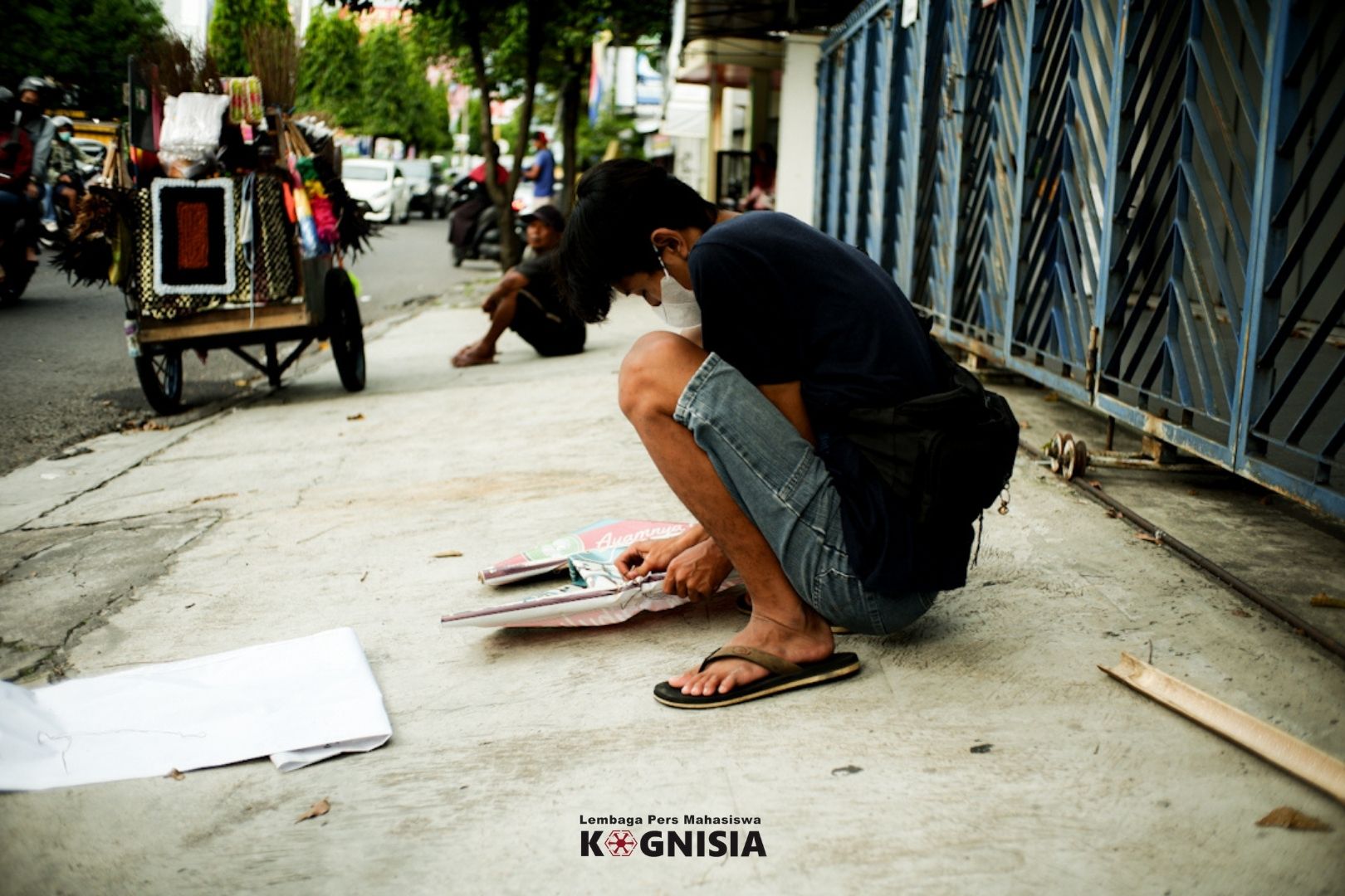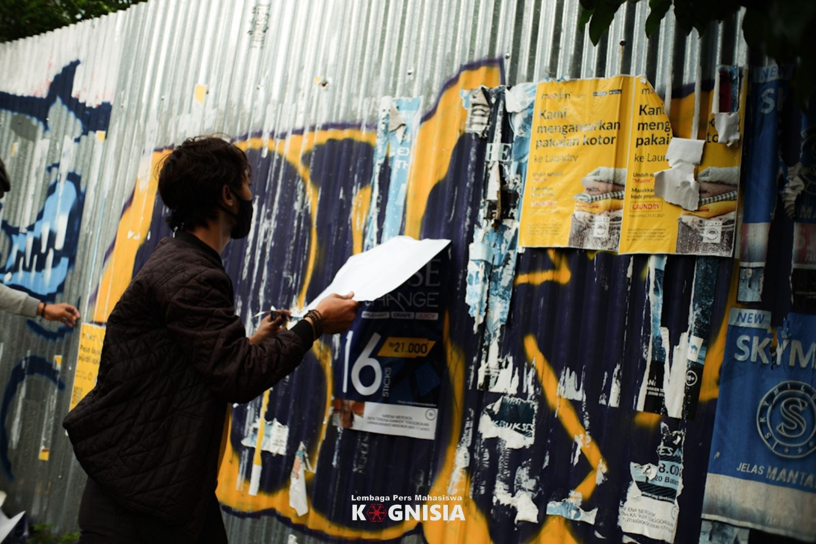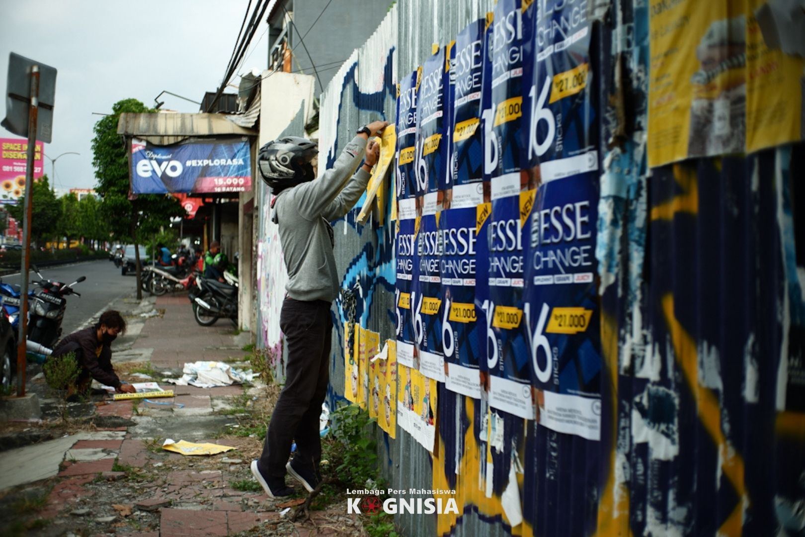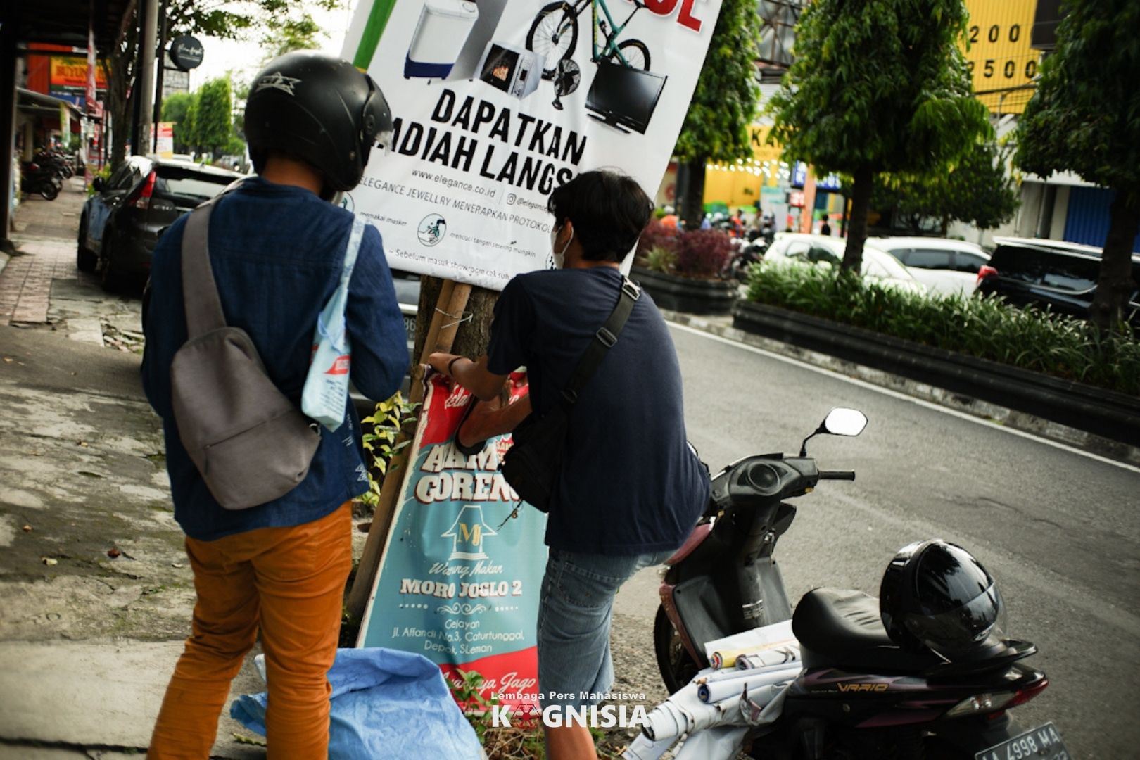 Mereka mulai menyisir tepi jalan sepanjang Gejayan. Beberapa menggunakan motor, ada pula yang bersepeda. Jika bertemu target, mereka lantas menepi dan langsung mengeksekusi. Satu-satu reklame yang menancap di pohon dan tiang-tiang dicopot dengan alat-alat yang disiapkan, lantas disortir bambu dan kawat pengaitnya, lembarnya dilipat. Teratur, rapi, dan cekatan.