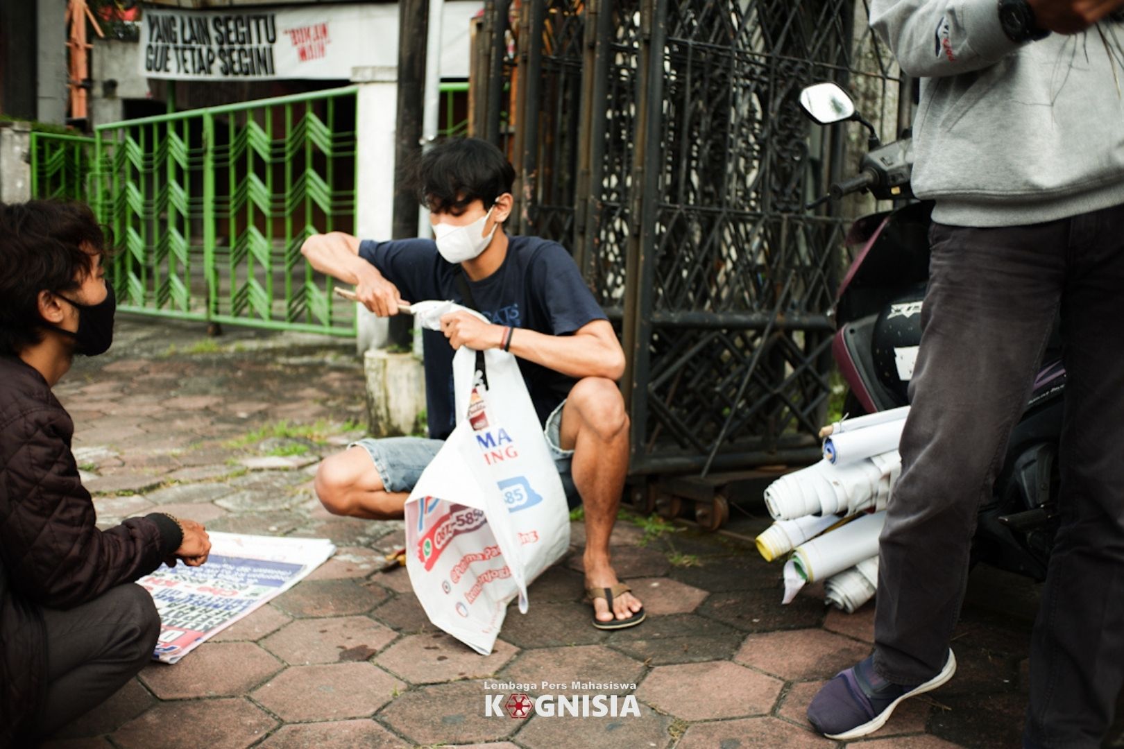 Beruntung pada sabtu (20/3), kami berkesempatan menyaksikan langsung bagaimana para pemuda ini meniti laku giat garuk sampah visual yang kala itu ditargetkan pada sepanjang jalan Affandi (Gejayan) terhitung dari simpang tiga Colombo sampai kawasan terminal Condong Catur. Kegiatan kali ini merupakan yang pertama setelah PPKM DIY dilonggarkan. Tentu saja situasi pandemi menjadi bahan pertimbangan mereka, untuk itu dari yang sebelumnya dua minggu sekali menjadi sekali sebulan.