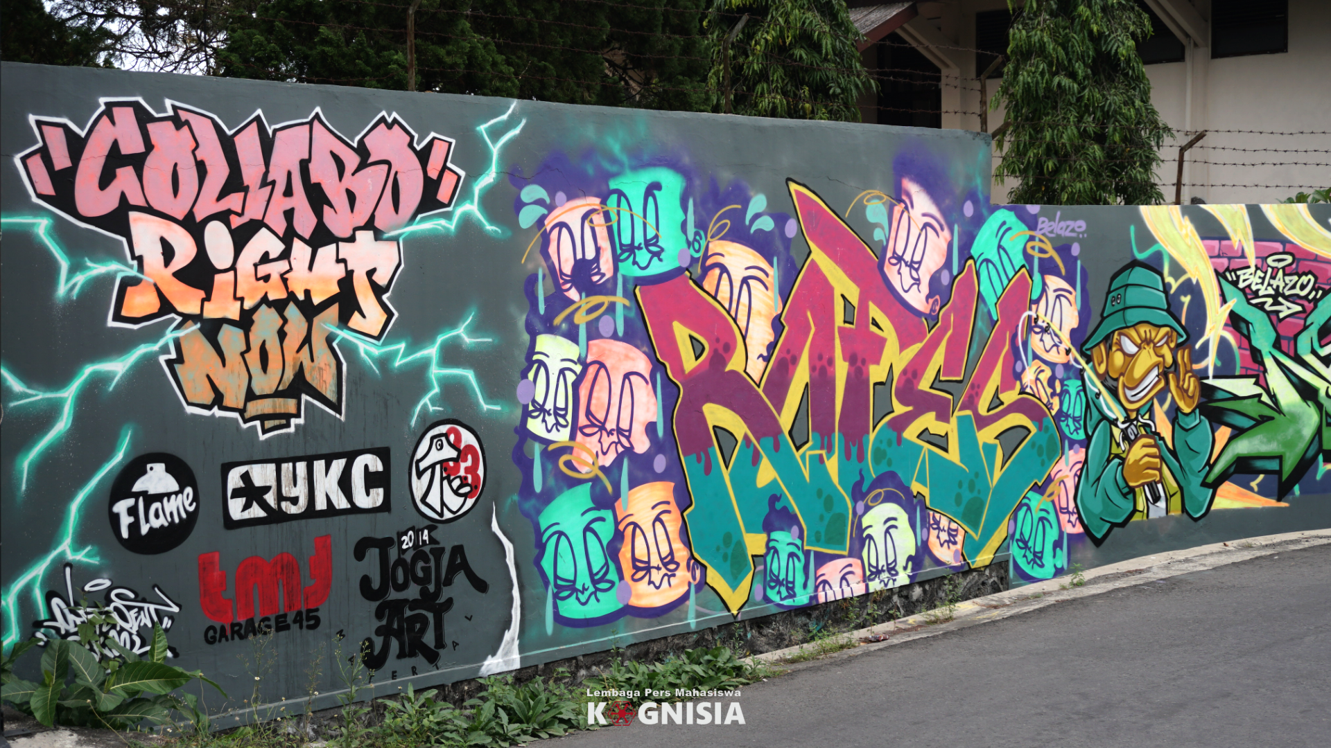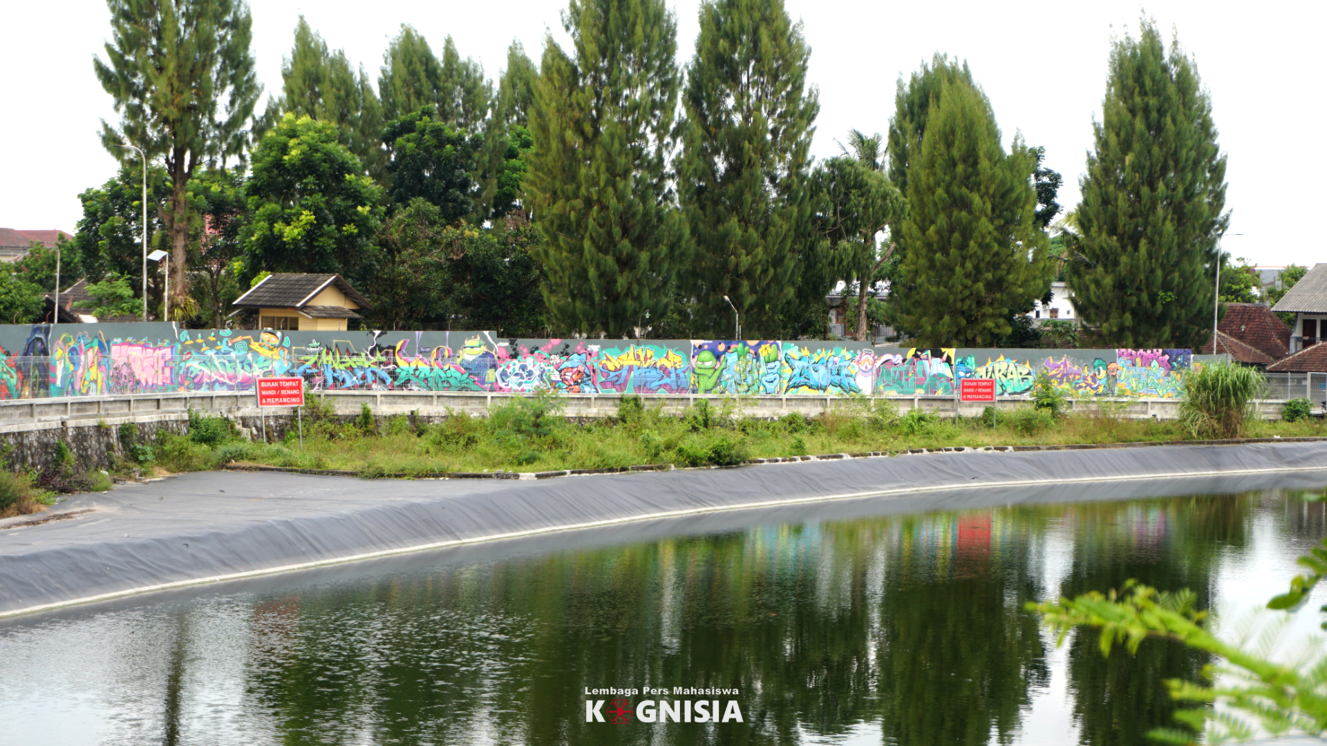 Sadar atau tidak, sejak awal tahun ini kumpulan corat-coret tembok yang acap disebut sebagai grafiti, nampak jelas di sepanjang tembok Embung Kladuan. Perpaduan warnanya memancar jauh, menemani perjalanan manusia-manusia yang melintas di depan Gedung Perpustakaan UII.