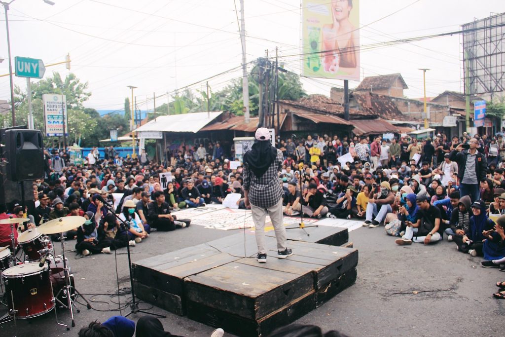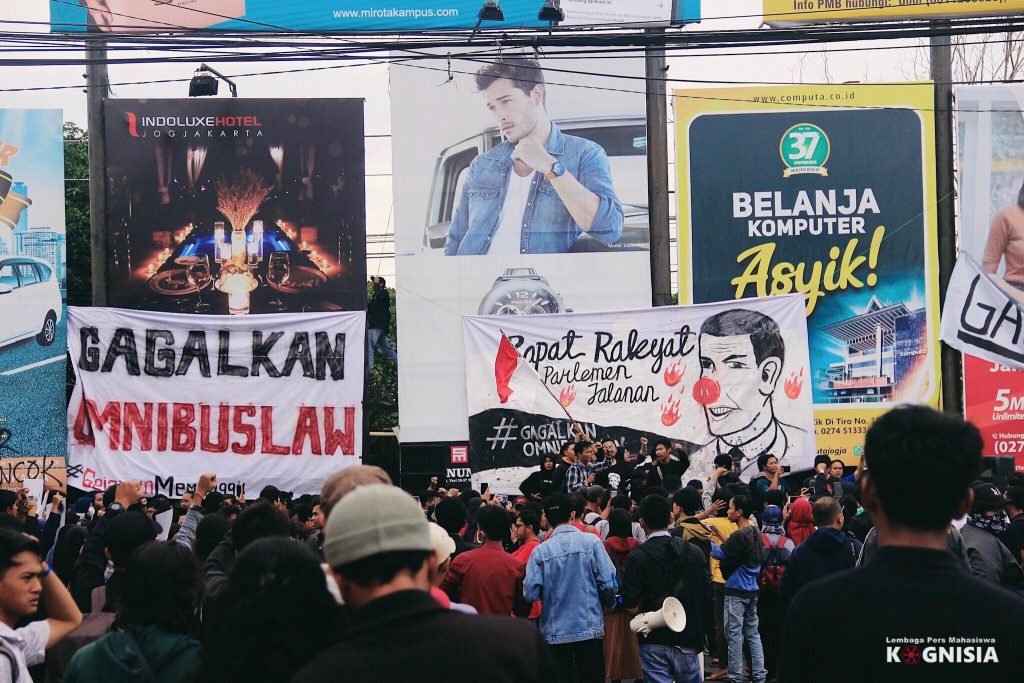 Omnibus Law usulan pemerintah mendapat penolakan dari berbagai elemen mahasiswa hingga buruh yang tergabung dalam Aliansi Rakyat Bergerak (ARB) pada Senin (9/3/19) di Pertigaan Gejayan.