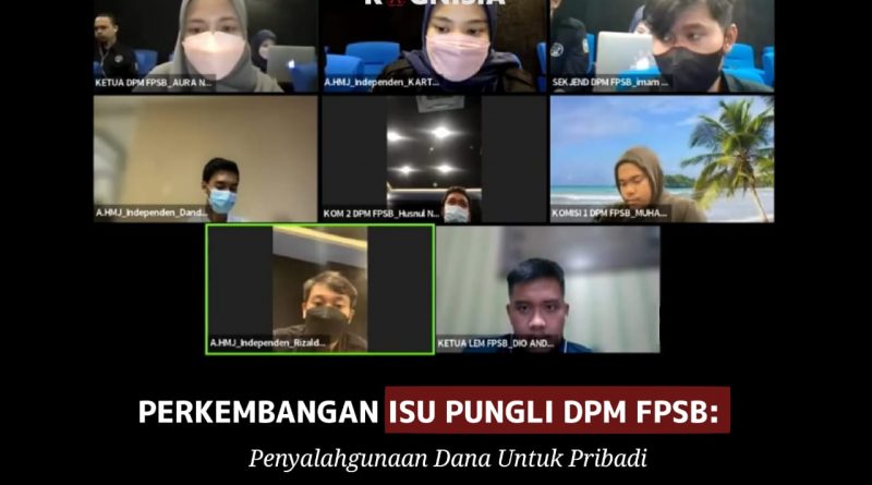 Melanjutkan pembahasan mengenai kasus penyalahgunaan bantuan SPP oleh Dewan Perwakilan Mahasiswa (DPM) FPSB pada November 2021, DPM FPSB kembali menggelar Press Conference pada Rabu (2/2/2022) untuk menindaklanjuti kasus tersebut. Acara ini juga dihadiri oleh Aliansi Independen HMJ dan LEM FPSB dengan dua agenda yang dibahas yaitu Penyalahgunaan Bantuan SPP dan Kasus Dugaan Penyalahgunaan Dana Lembaga DPM FPSB.